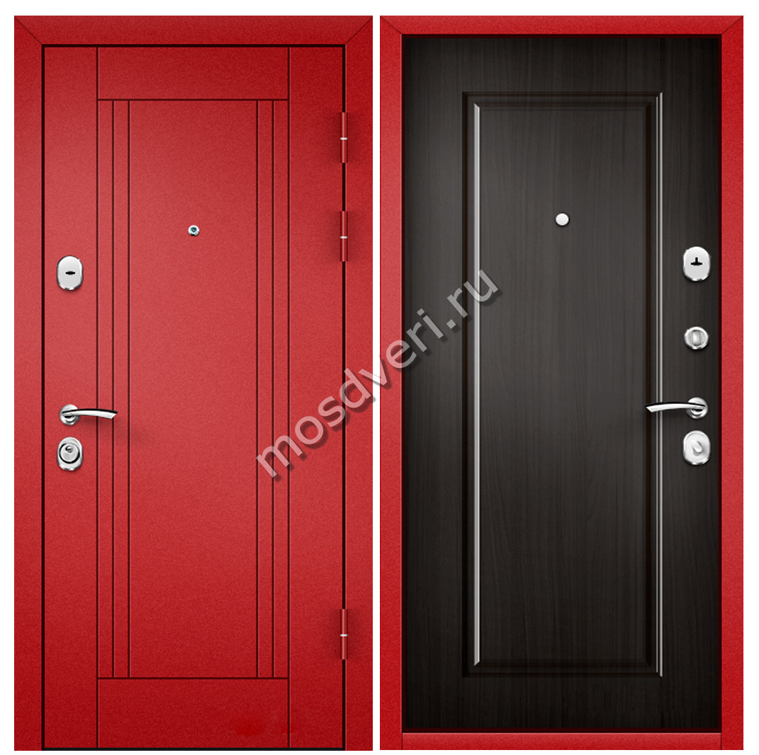 Красная входная дверь в квартиру KVD-01 — совмещает стильный внешний вид и превосходные защитные характеристики.
