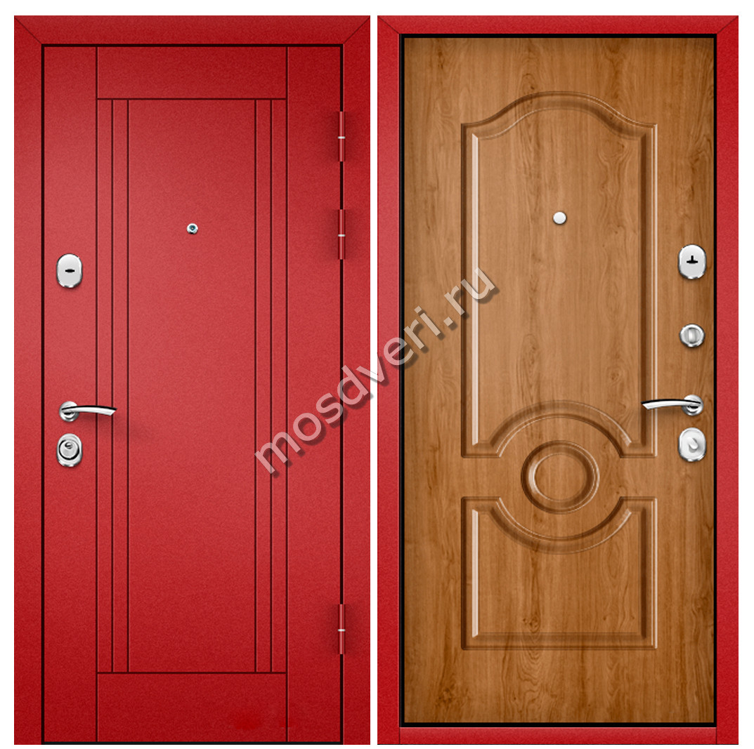 Красная входная дверь в квартиру KVD-32 — сочетает в себе эстетичность и высокую надёжность.